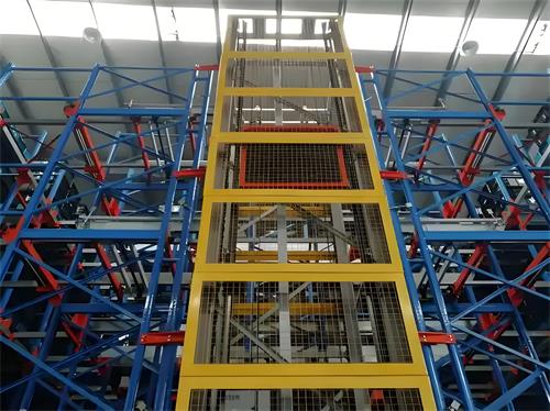穿梭貨架柱片為裝配式結構,由若干橫撐、斜撐和立柱通過高強度螺栓連接裝配而成。貨架 柱片與地面之間采用高強度螺栓連接于地面板上,而地面板通過地腳螺栓連接于地面;橫梁與柱片之間采用四爪插接方式連接,并配以安全銷,可有效防止因叉車操作失誤而叉掉橫梁之類事故的發生,牛腿為整體沖壓式牛腿,與柱片之間采用插接方式連接,并配 以安全銷鎖定;導軌座為沖、折成型件,與橫梁或牛腿焊成一體,便于導軌的定位和連接,承載能力強;導軌由連續沖孔和專用軋機 軋制成型,呈異“Z”型,精度高,截面模量大,剛性好,承載能 力強;與導軌座連接固定,在導軌兩端設置安全擋板,防止穿梭車出位;相鄰方向柱片之間采用隔撐加強連接,以提高貨架整體承載能力和穩定性;整個貨架系統連成了一體,非常穩固。